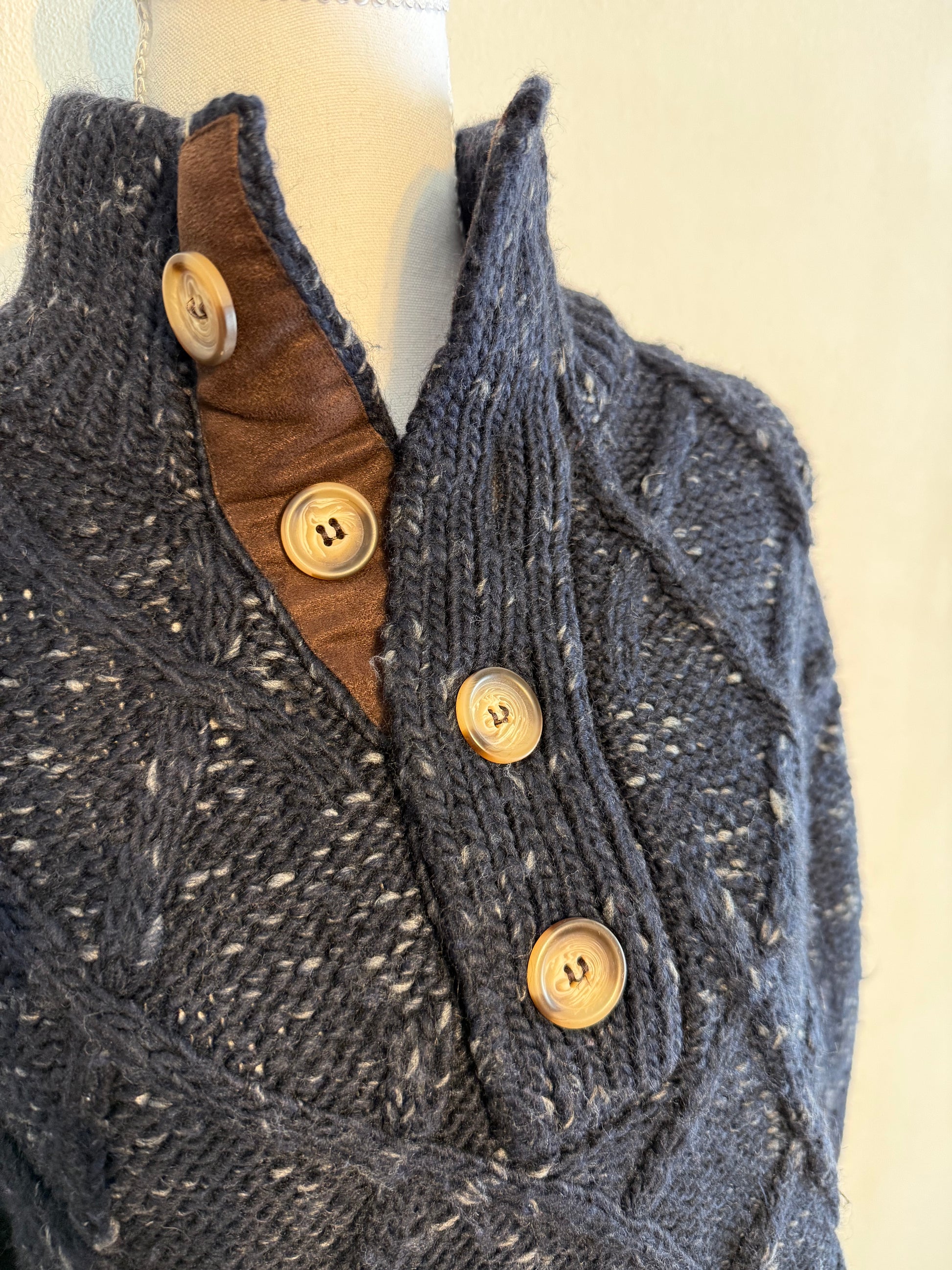 Colore blu con lavorazione a trecce e dettagli mélange.